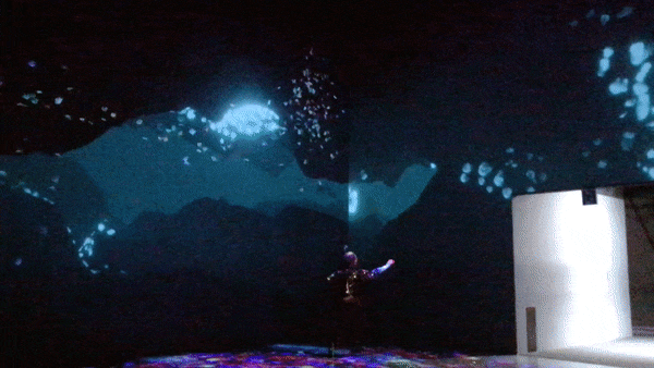 During the final week of my internship I was given the opportunity to test the installation in the teamLab Borderless space. I am very proud that the simulation was able to run successfully and respond to audience interactions while being projected on multiple walls. Given more time I would have loved to fine tune the simulation to work as effectively as possible in the space, but I am satisfied with what I produced as a proof of concept.